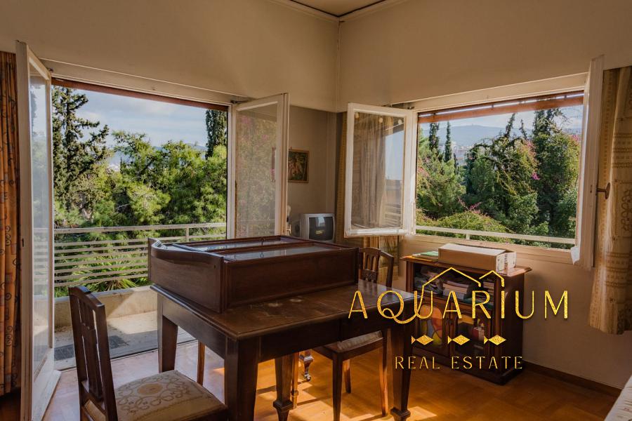 Έχει άνετη βεράντα περιμετρικά με ανεμπόδιστη θέα στο άλσος.