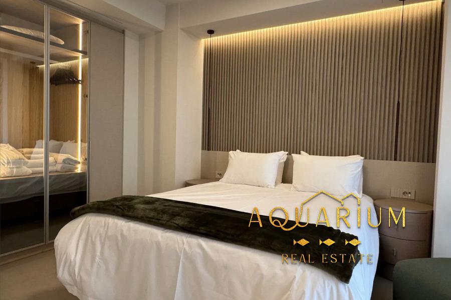 It is offered fully equipped and furnished, featuring underfloor heating, air conditioning, alarm system, and solar water heater.