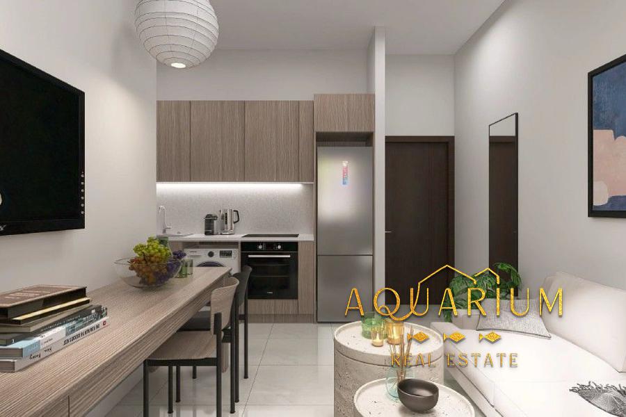 It consists of a living room with open kitchen, 1 bedroom and a bathroom.